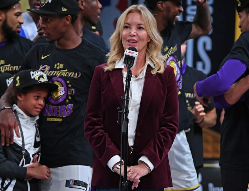 Lakers Owner Jeanie Buss Visits World Series Trophy At Dodger Stadium