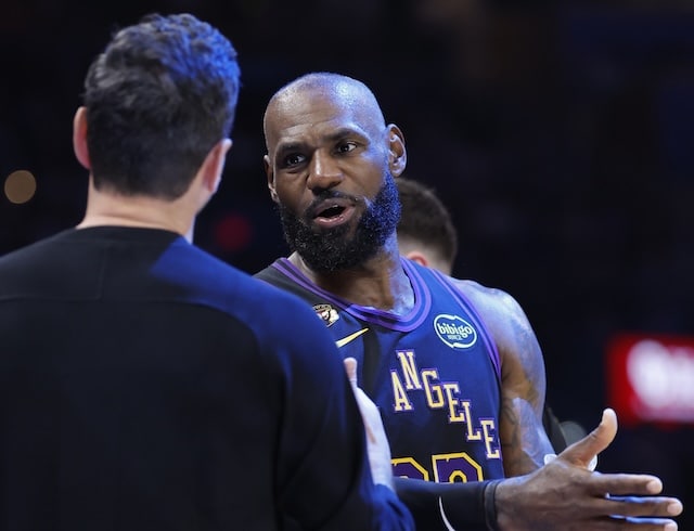 Thursday night’s bout between the Los Angeles Lakers and Oklahoma City Thunder was about a disastrous a game as possible for the purple and gold. Not only did they lose by 43 points, but Luka Doncic suffered what appeared to be a significant hamstring injury in the third quarter, leaving LeBron James and Austin Reaves without their co-star.