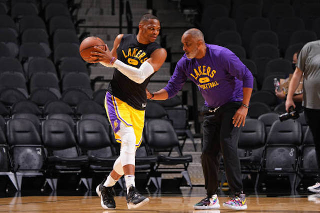 Just before halftime, Westbrook was seen in a conversation with assistant coach Phil Handy that some might call heated. Westbrook reportedly told the Lakers coaching staff that they ‘had to be better’ according to NBA TV reporter Jared Greenberg, via Talkin’ NBA Twitter:
